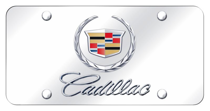 These Cadillac stainless steel plates are polished to a beautiful mirror-like finish that will never rust or corrode. The dimensions are 6" x 12" and fit US sized license plate holders and frames. The 3D raised logos and names are chrome-plated for brilliant shine and durability.