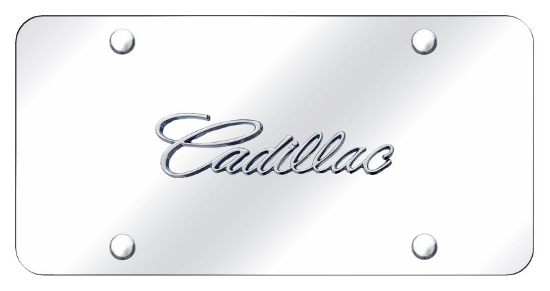 These Cadillac stainless steel plates are polished to a beautiful mirror-like finish that will never rust or corrode. The dimensions are 6" x 12" and fit US sized license plate holders and frames. The 3D raised name is chrome-plated for brilliant shine and durability.