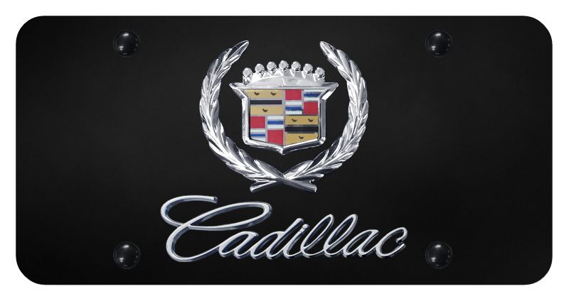 These Cadillac stainless steel plates are black powder coated for a finish that will never rust or corrode. The dimensions are 6" x 12" and fit US sized license plate holders and frames. The 3D raised logos and names are chrome-plated for brilliant shine and durability. Cadillac used this logo until 2002.