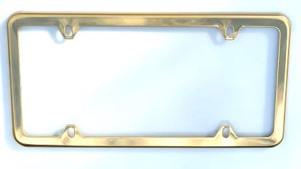 Available again after nearly two decades - traditional Polished Gloss Gold. Beautiful highly polished GOLD TITANIUM FINISH over stainless steel license plate frame (tag holder). These frames have a mirror quality finish and will match the gold trim on your vehicle. Each frame comes with matching hardware covers (screw cap covers), however there is an option to order extras. The 1/2" width of all the sides ensures no information on your license plate is covered. These are the finest quality license frames made anywhere in the world. The manufacturer is a direct parts supplier to most of North America’s luxury, and ultra luxury vehicle makers.